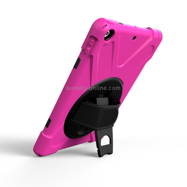 Funda para iPad 9.7 PC con Rotación 360 Grados Silicona Soporte Correa de Mano (Magenta)
