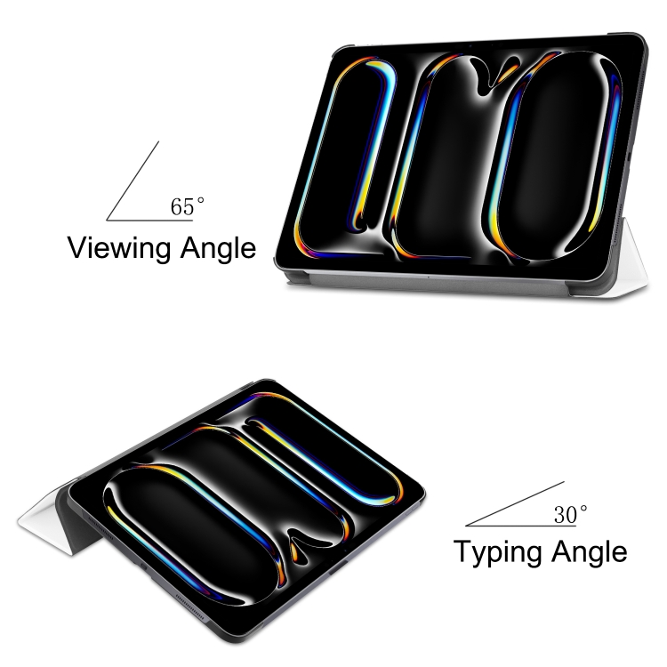 Funda de Cuero Inteligente Custer de TPU con Tres Pliegues y Bandeja para Bolígrafos para iPad Pro 11 (2024) (Blanco)