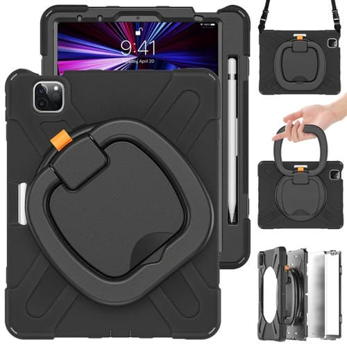 Funda híbrida de silicona para iPad Pro 11 (2024) con soporte y correa para el hombro (Negra)