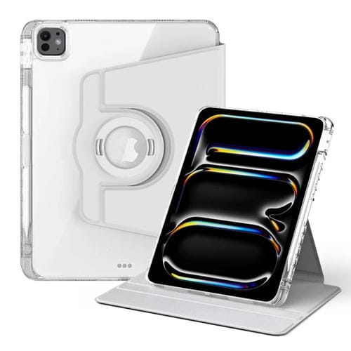 Funda para iPad Pro 11 (2024) Piel Acrílica Transparente Desmontable Rotación 360 (Gris)