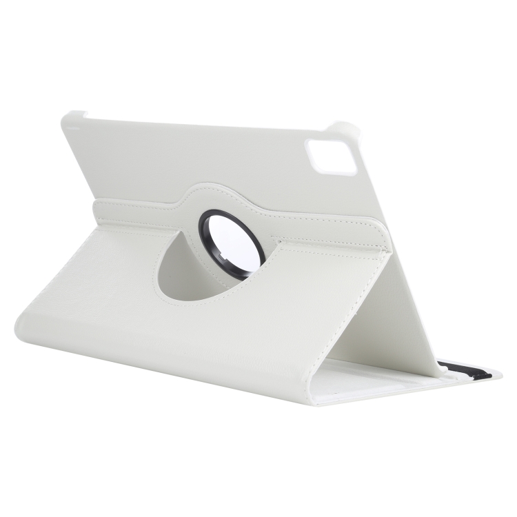 Funda para iPad Pro 11 (2024) Piel Textura Lichi Rotación 360 Soporte (Blanca)