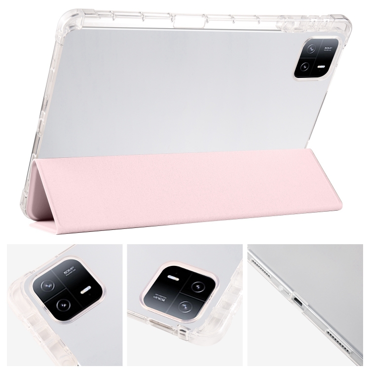 Funda para iPad Pro 11 (2024) de Cuero Inteligente TPU Transparente 3 Pliegues con Ranura para Bolígrafo (Rosa Arena)