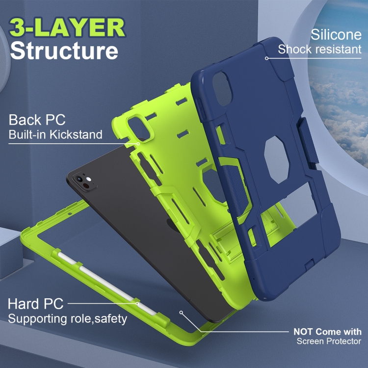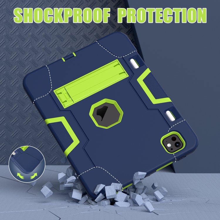 Funda de Silicona Acrílica con Soporte para iPad Pro 11 (2024) (Azul Marino, Amarillo y Verde)