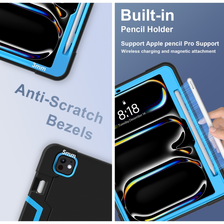 Funda de Silicona Acrílica con Soporte para iPad Pro 11 (2024) (Negro y Azul)