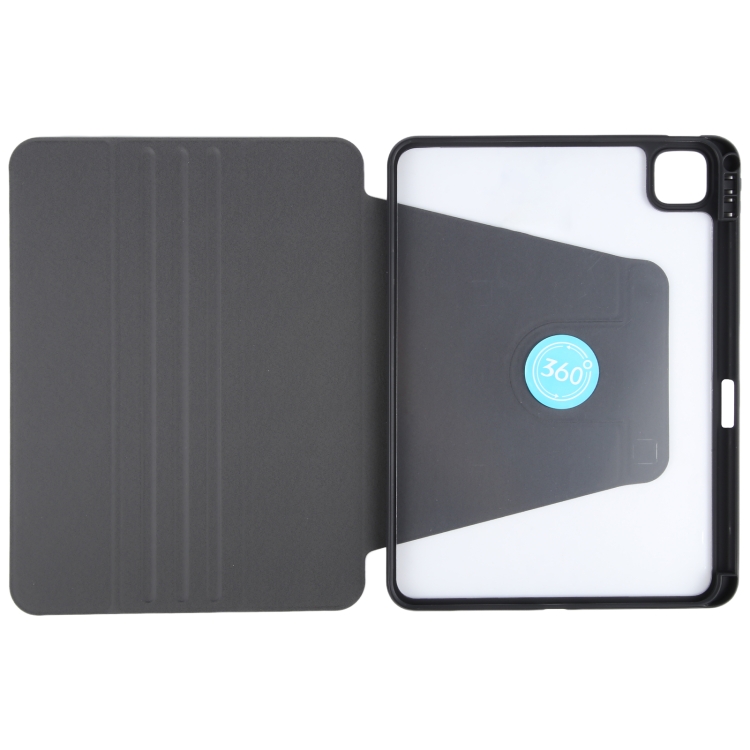 Funda para iPad Pro 11 Gebei Piel Sintética Tres Pliegues Giratoria Acrílico TPU Ranura Bolígrafo (2024) (Negro)