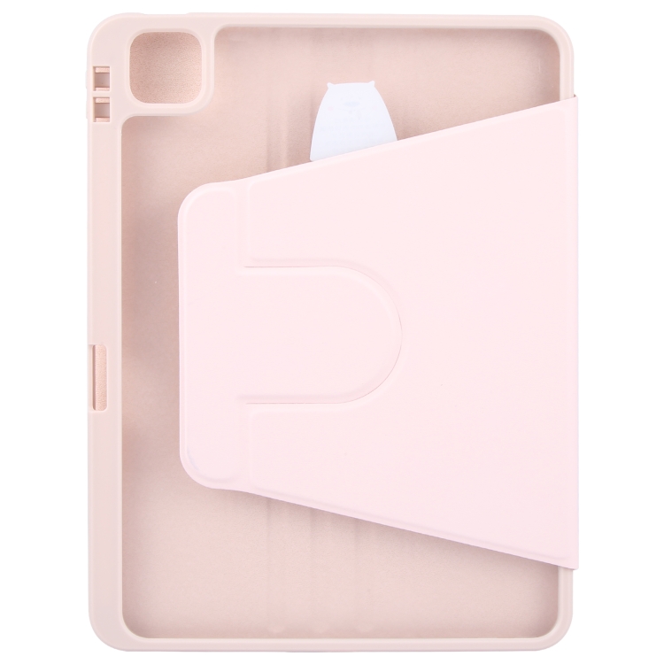 Funda para iPad Pro 11 Gebei Piel Sintética Tres Pliegues Giratoria Acrílico TPU Ranura Bolígrafo (2024) (Rosa)