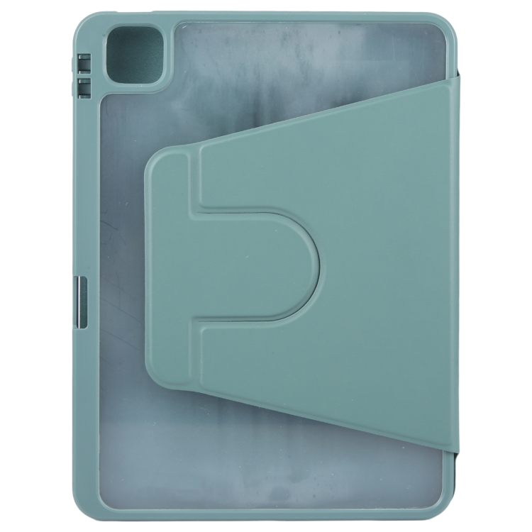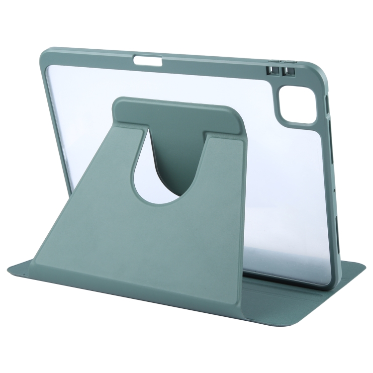 Funda para iPad Pro 11 Gebei Piel Sintética Tres Pliegues Giratoria Acrílico TPU Ranura Bolígrafo (2024) (Verde Oscuro)