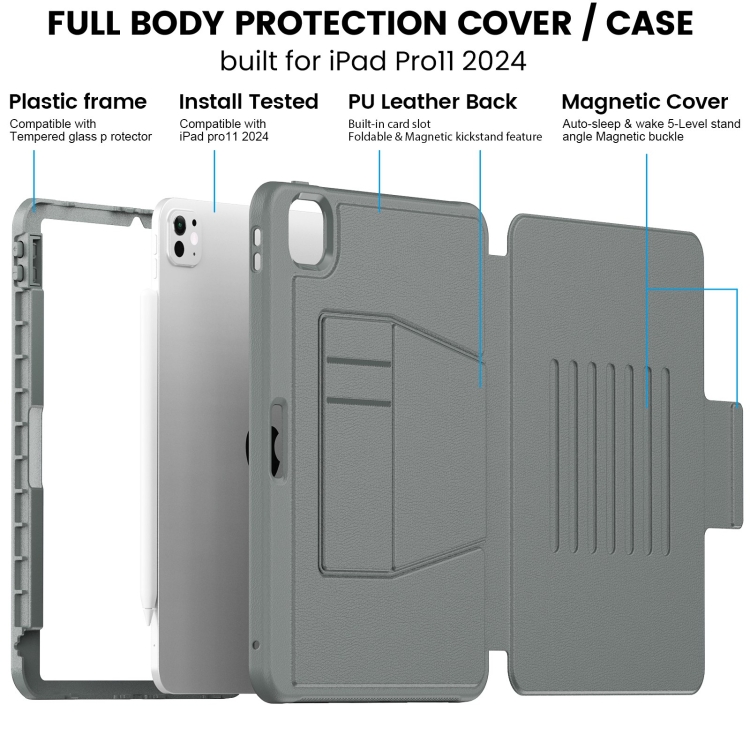 Funda de Cuero con Soporte Magnético Smart B para iPad Pro 11 (2024) (Gris)