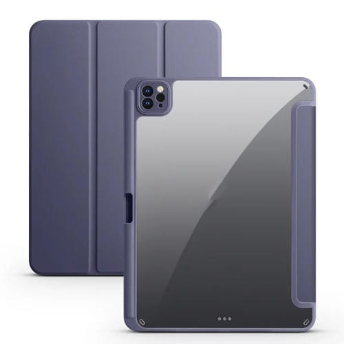 Estuche para Tableta iPad Pro 12.9 Cuero Inteligente 3 Pliegues Acrílico (Púrpura)