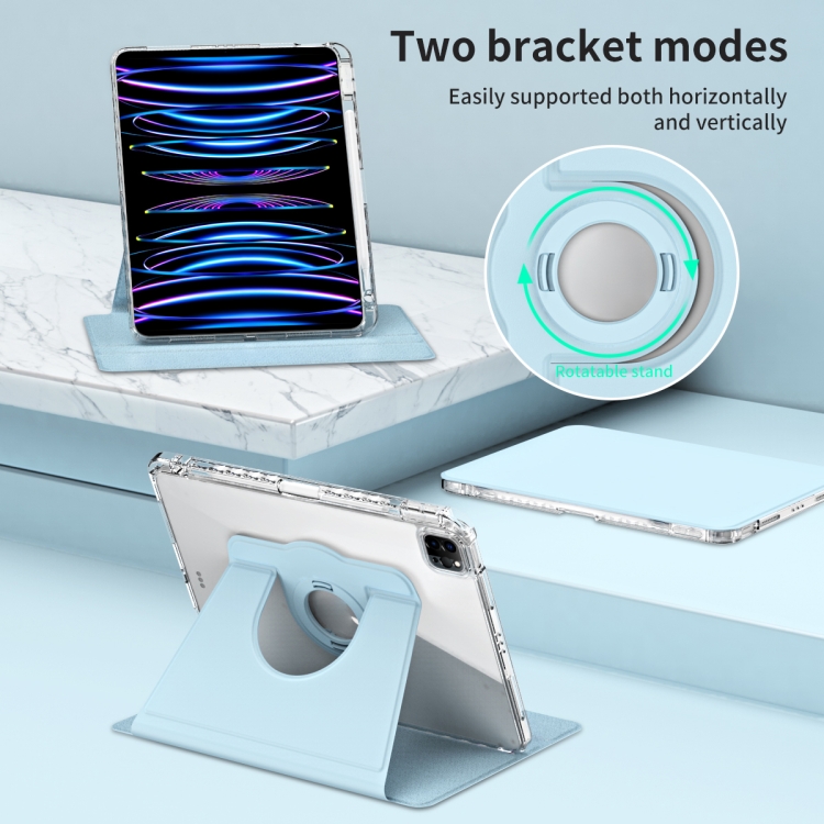 Funda para Tableta iPad Pro 12.9 2022/2021/2020 Cuero Acrílico Transparente Rotación 360 (Azul Hielo)