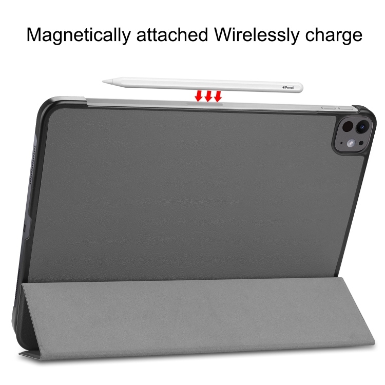 Funda para Tableta Custer Pure Color iPad Pro 13 Cuero Inteligente Soporte 3 Pliegues (Gris)