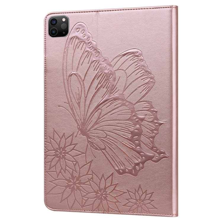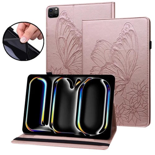 Funda para Tableta iPad Pro 13 2024 Cuero Relieve Mariposa Grande (Oro Rosa)