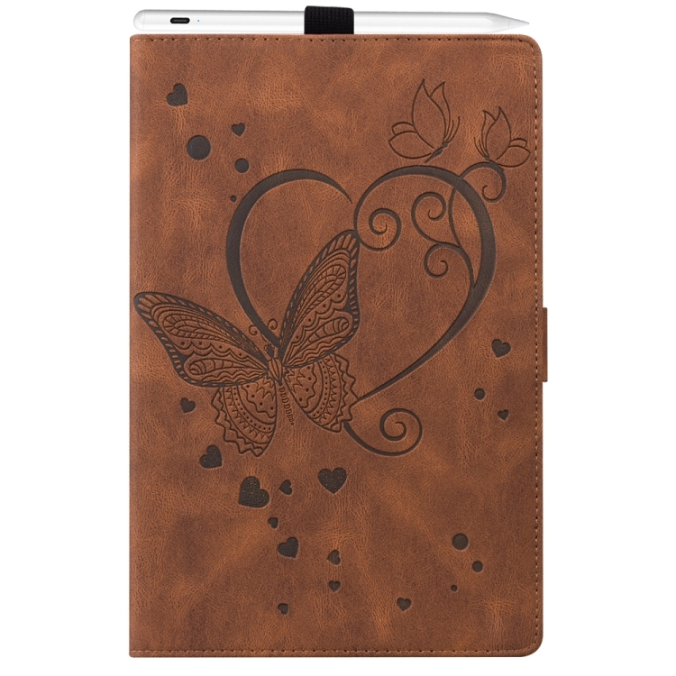 Funda para Tableta iPad Pro 13 2024 Cuero con Relieve Love Butterfly (Marrón)