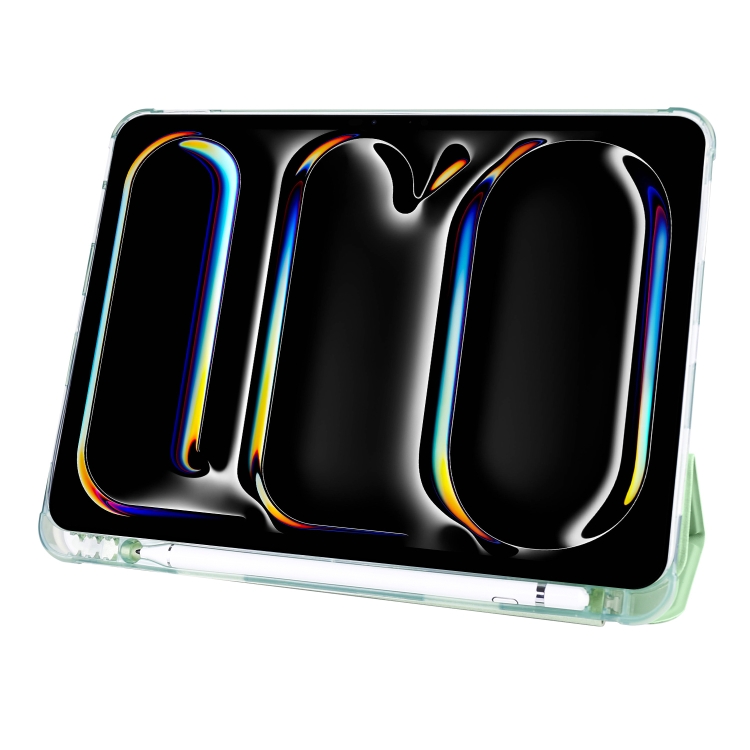 Funda para Tableta iPad Pro 13 2024 Cuero TPU 3 Pliegues Ranura Bolígrafo (Verde Matcha)