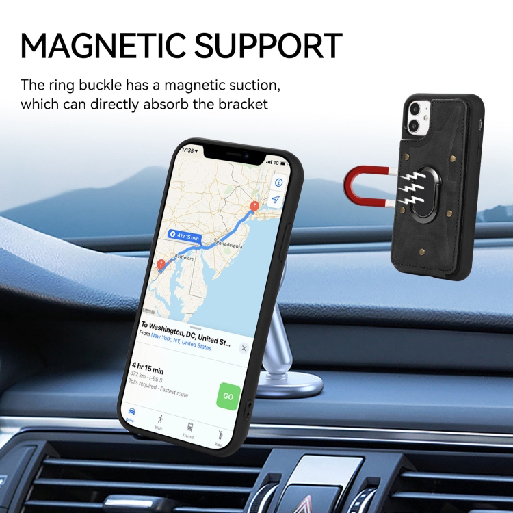 Funda para iPhone 11 Armor Ring Wallet Back Cover (Negro)