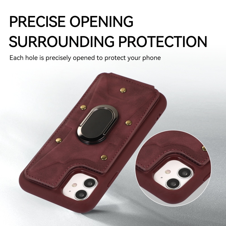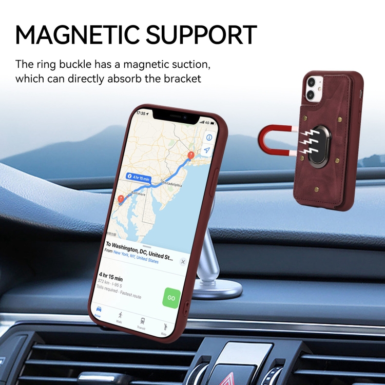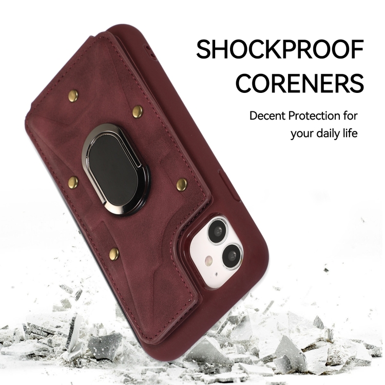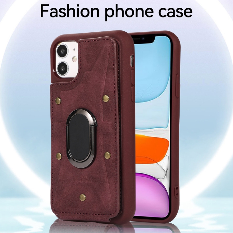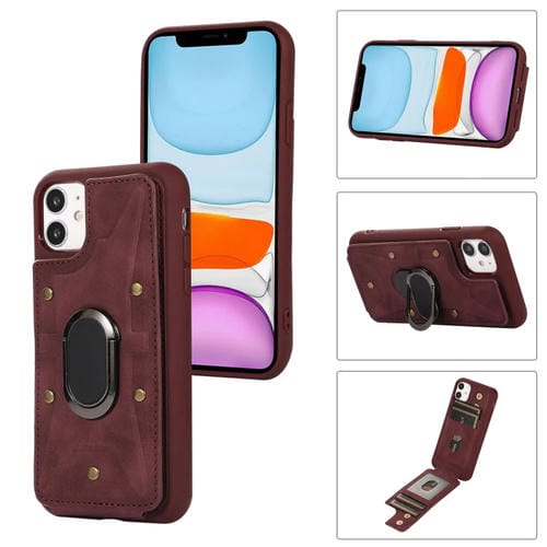 Funda para iPhone 11 Armor Ring Wallet Back Cover (Vino Rojo)