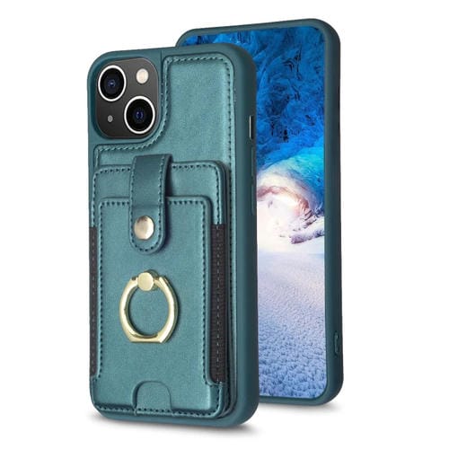 Funda para iPhone 11 Bf27 Anillo de Metal Tarjeta Bolsa Titular Caja del Teléfono (Verde)