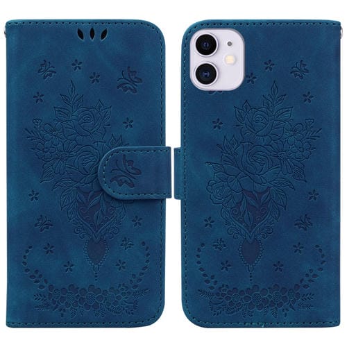 Funda para iPhone 11 Butterfly Rose Cuero En Relieve (Azul)