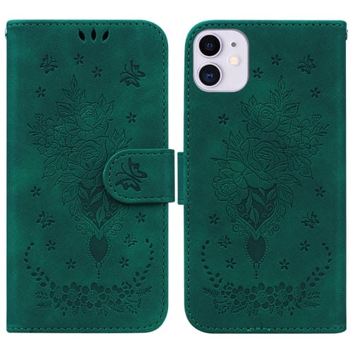 Funda de Cuero iPhone 11 Butterfly Rose En Relieve para Teléfono (Verde)