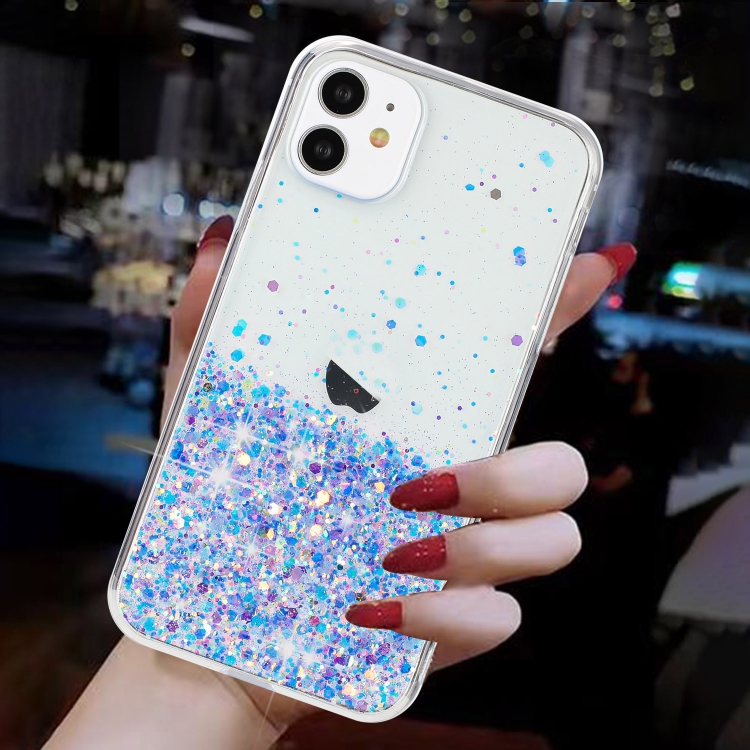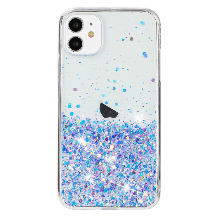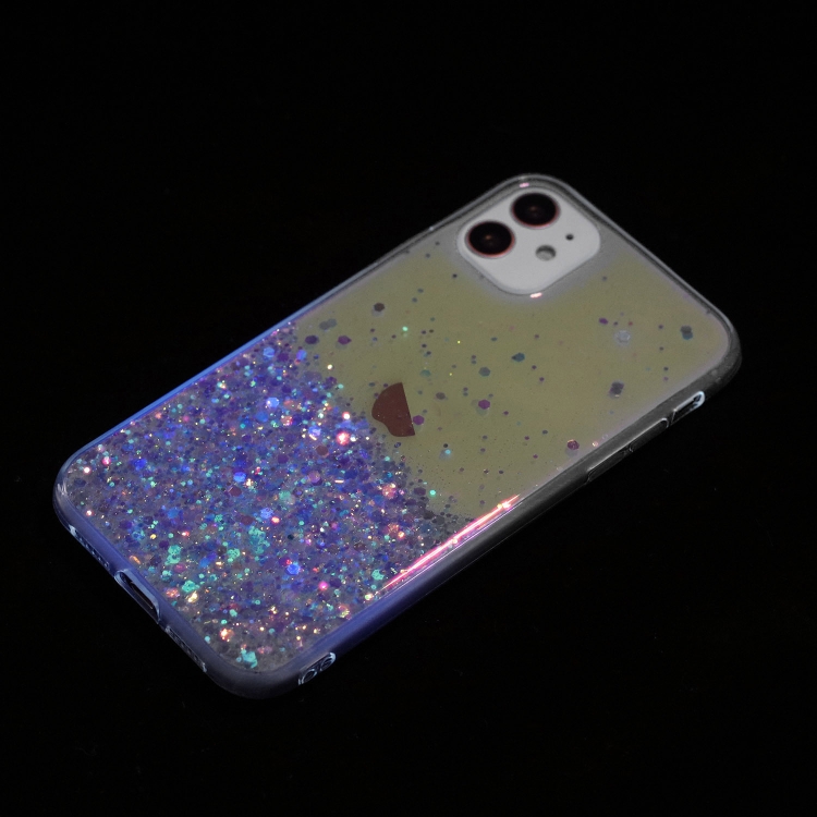 Funda para iPhone 11 TPU con Polvo de Brillo Noctilucente y Marco Transparente (Púrpura)