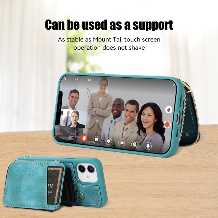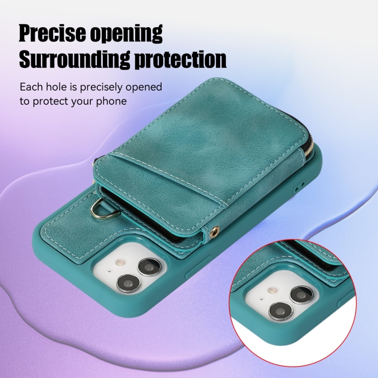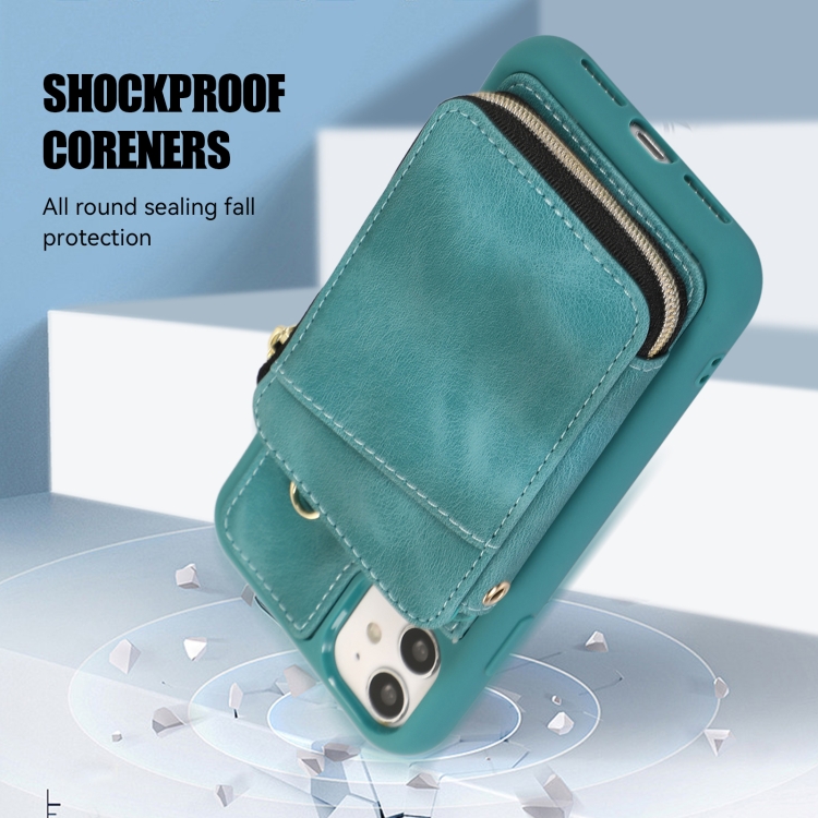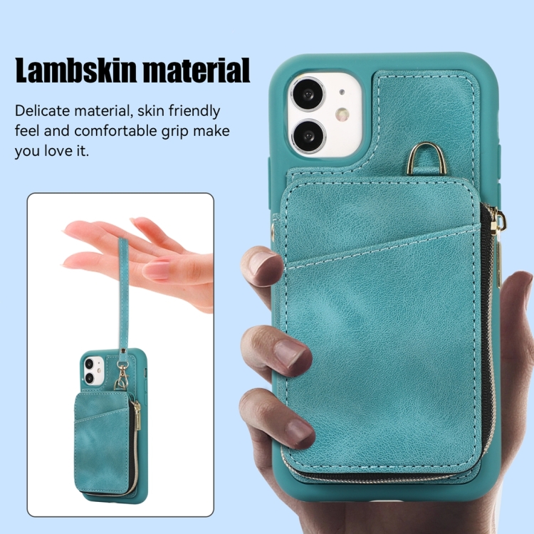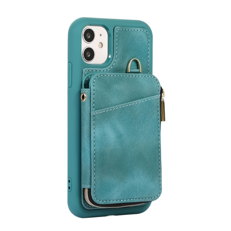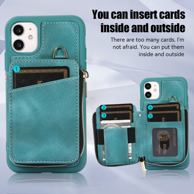 Funda Trasera para Teléfono iPhone 11 con Cremallera y Bolsa de Tarjeta (Turquesa)
