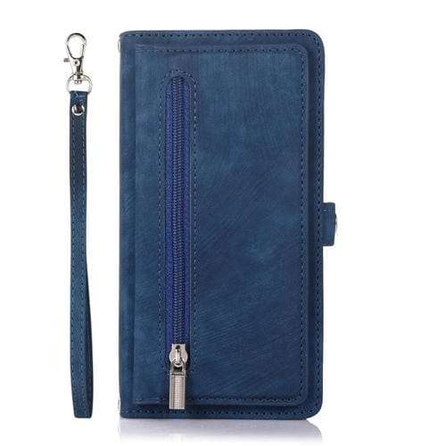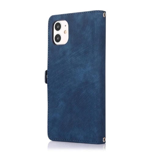 Funda para Teléfono iPhone 11 Cremallera Ranura para Tarjeta Hebilla Monedero Cuero (Azul)