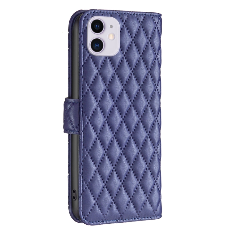 Funda para teléfono iPhone 11 Diamond Lattice Wallet de cuero con tapa (Azul)