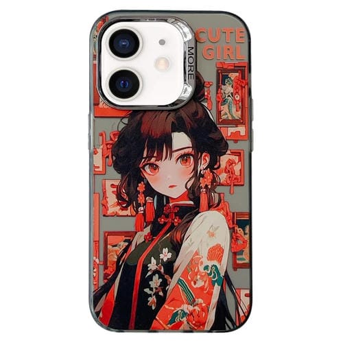 Funda para iPhone 11 Estilo Antiguo Chino Anillo de Lente Electrochapado PC Hybrid TPU (Red Letter Girl)