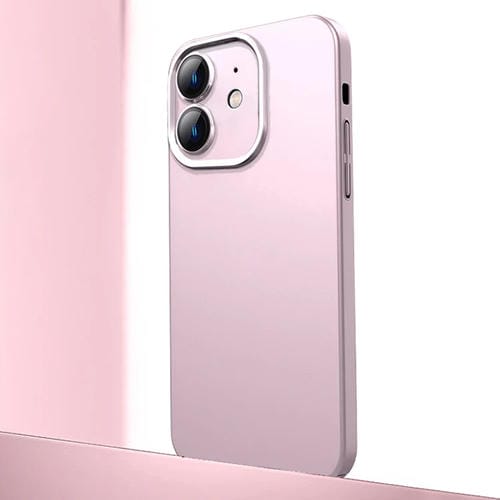 Estuche de Teléfono iPhone 11 Material de Metal Esmerilado Protección de Lente (Rosa)