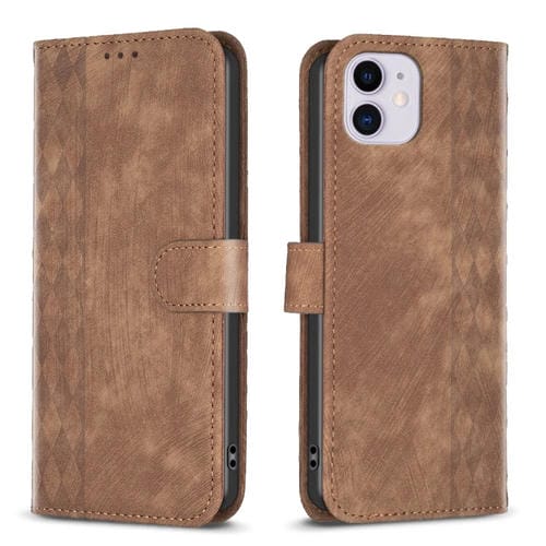 Funda de Teléfono iPhone 11 Cuero En Relieve a Cuadros (Marrón)