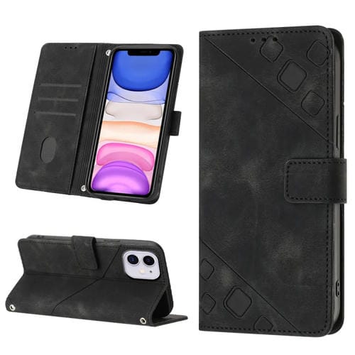 Funda de Teléfono iPhone 11 Cuero En Relieve con Tacto de Piel (Negro)