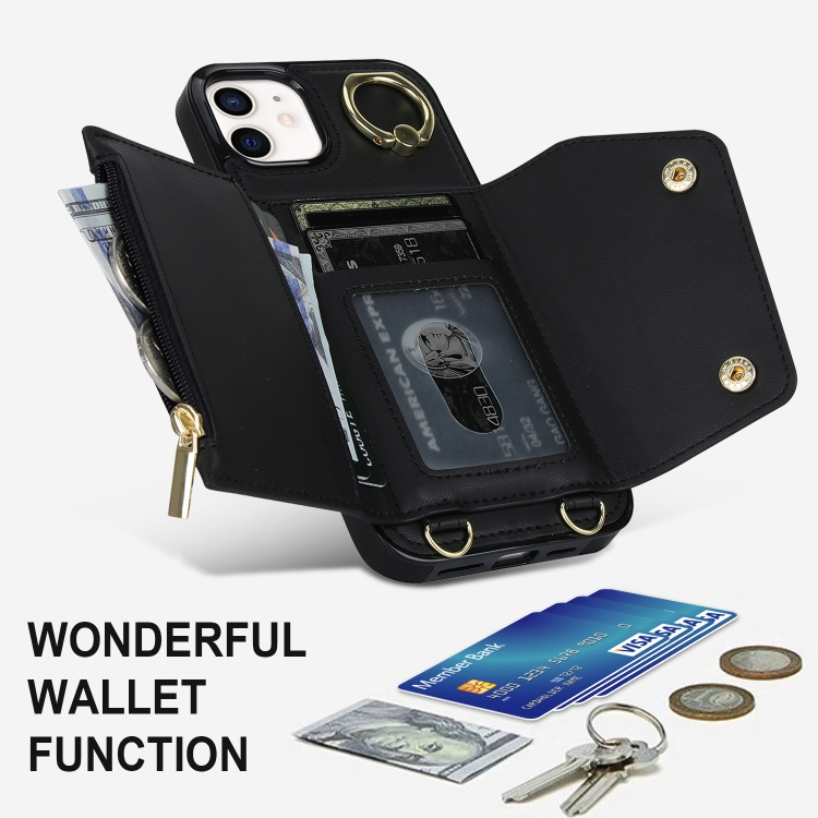 Funda para Teléfono iPhone 11 Bolsa de Tarjeta con Cremallera y Doble Cordón (Negro)