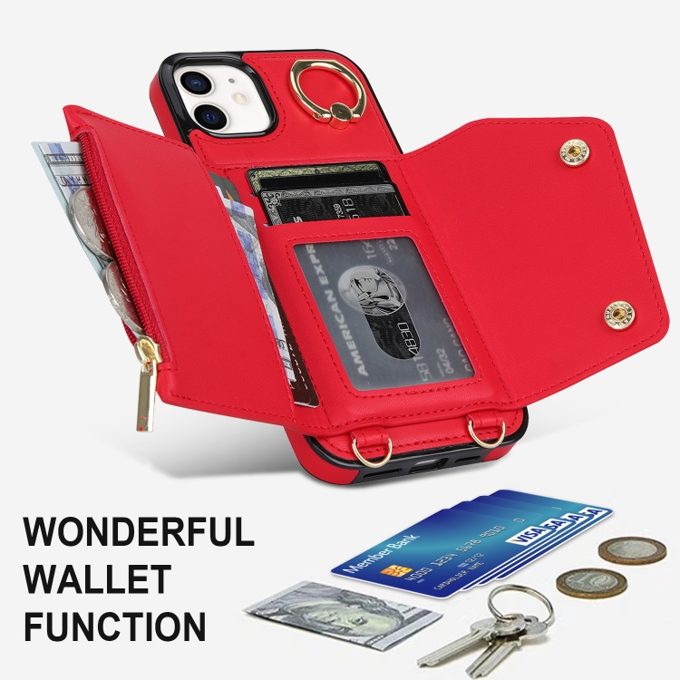 Funda para Teléfono iPhone 11 con Cremallera y Doble Cordón (Rojo)