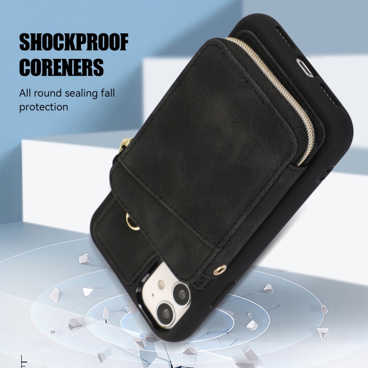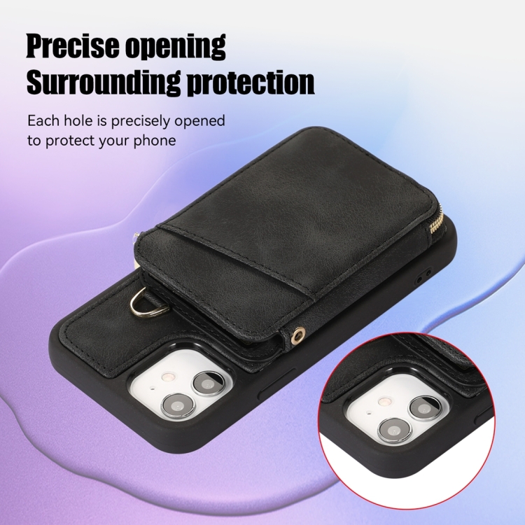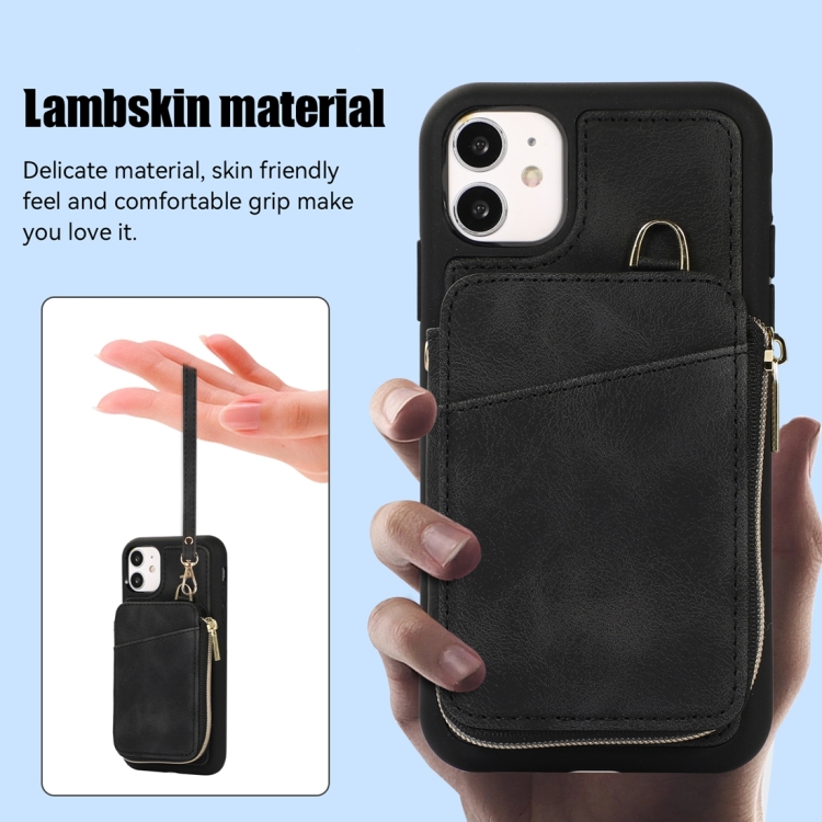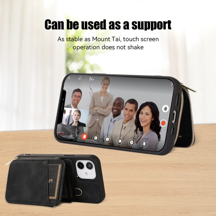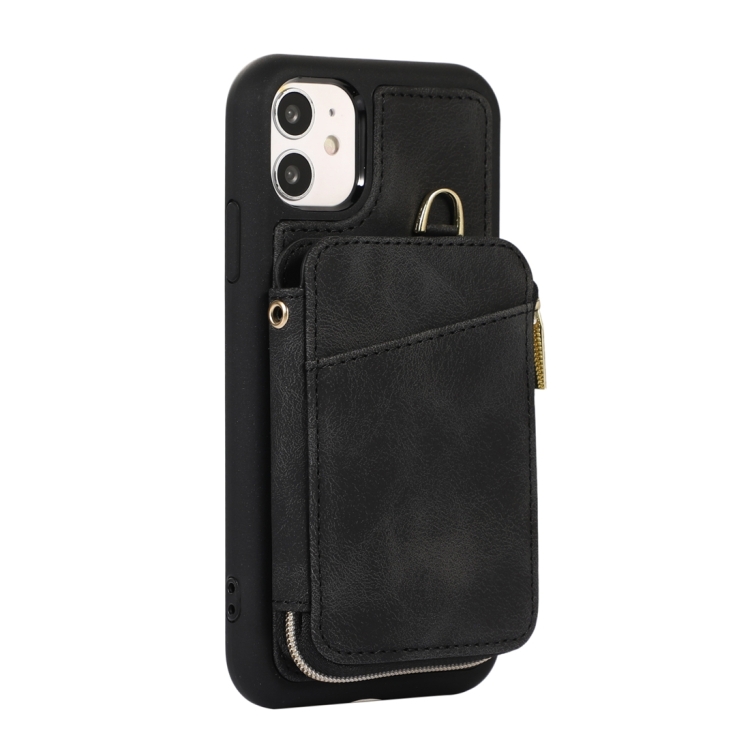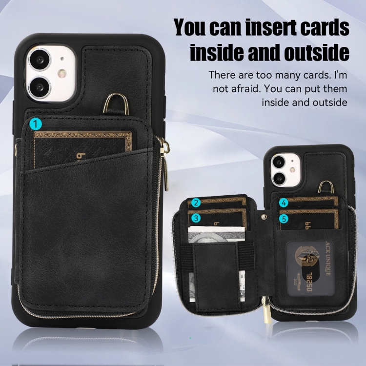 Funda para Teléfono iPhone 11 con Cremallera y Funda Trasera para Tarjeta (Negro)