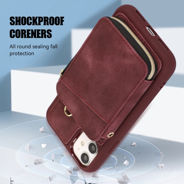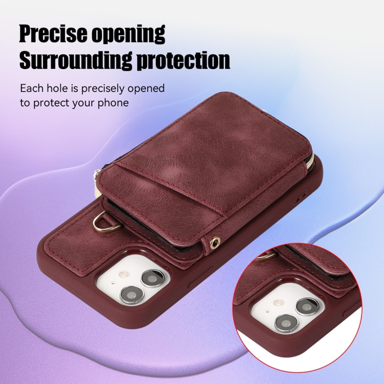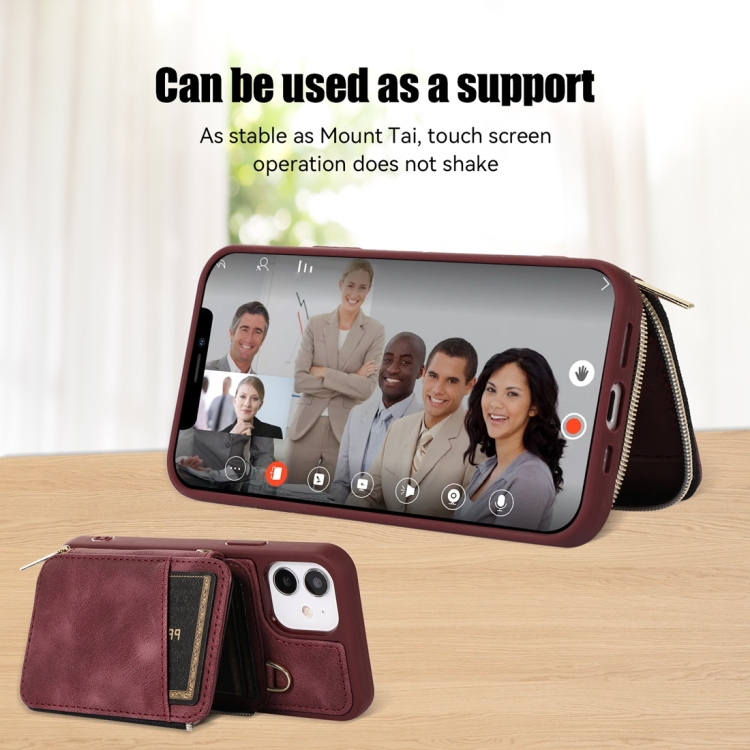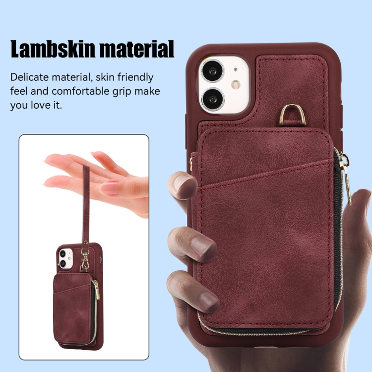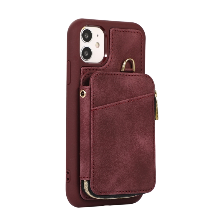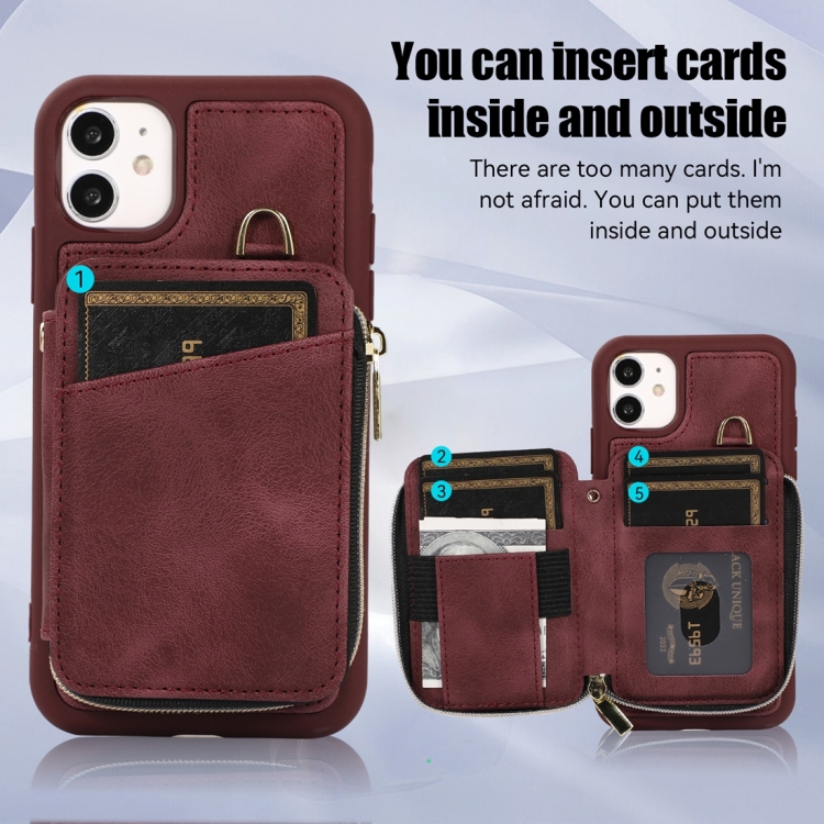 Funda para Teléfono iPhone 11 con Cremallera y Funda Trasera para Tarjeta (Rojo Vino)