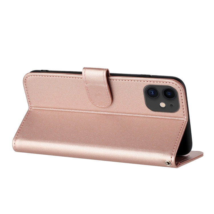Funda para teléfono iPhone 11 Cuero con Tapa en Relieve Flores Datura (Oro Rosa)