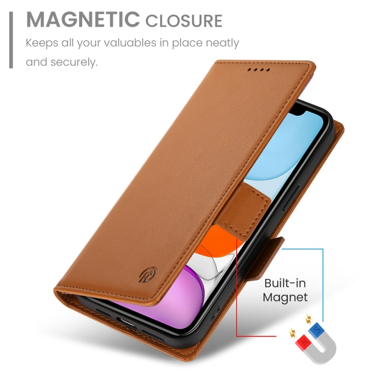 Funda para Teléfono iPhone 11 Cuero Esmerilado Magnético con Hebilla Lateral (Marrón)