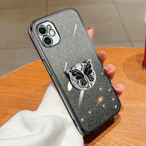 Funda para Teléfono TPU iPhone 11 Soporte Mariposa Brillo Degradado (Negro)