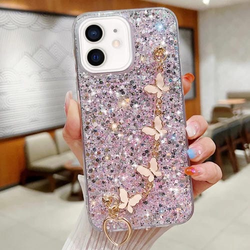 Funda para Teléfono TPU Epoxi para iPhone 11 con Cadena de Mariposa y Lentejuelas Estrelladas (Rosa)