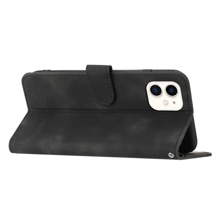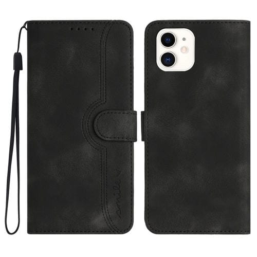 Funda para iPhone 11 Heart Pattern Skin Feel Leather Phone Case (Negro)