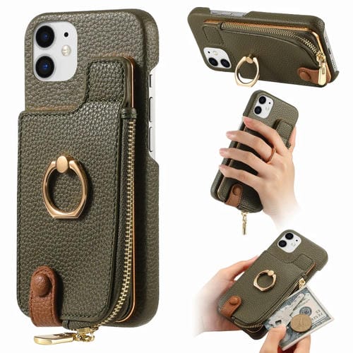 Funda para teléfono iPhone 11 Litchi Leather Oil Edge Ring Zipper Wallet Back (Verde)