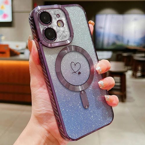 Funda para Teléfono iPhone 11 Loves Gradient Glitter Fibra de Carbono Magsafe TPU (Púrpura)