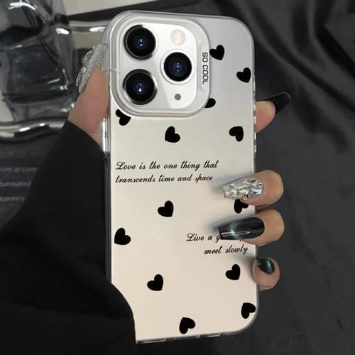Funda híbrida para iPhone 11 Pro TPU para PC con pintura plateada (Corazones de amor blancos)