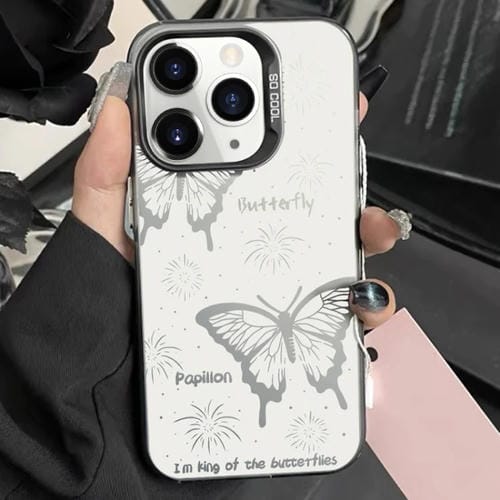 Caja de Teléfono Híbrida TPU para PC iPhone 11 Pro con Pintura Plateada (Mariposa Hueca Negra)