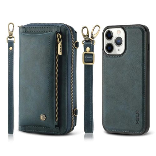 Funda de Cuero Crossbody para iPhone 11 Pro con Billetera y Cremallera Multifuncional (Verde)