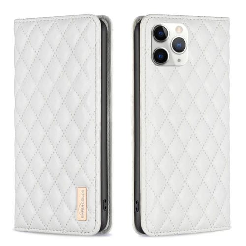 Funda de teléfono para iPhone 11 Pro Diamond Lattice con tapa de cuero magnético (Blanco)