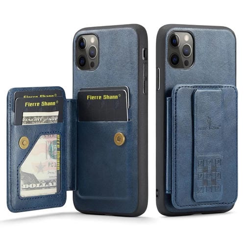Funda para iPhone 11 Pro Fierre Shann Oil Wax con Tarjetero de Cuero de Vaca (Azul)