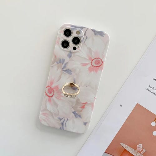 Funda TPU para iPhone 11 Pro Frusted Flowers Pattel IMD con Anillo de Diamante de Metal (Rosa)