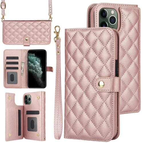 Funda para iPhone 11 Pro Cruzada de Cuero Rómbico Multifunción (Oro Rosa)
