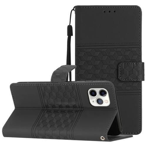 Funda para Teléfono iPhone 11 Pro Cuero Tacto de Piel En Relieve con Cordón (Negro)